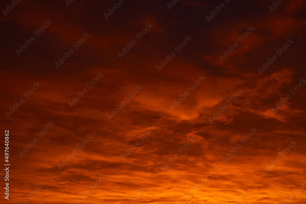 Cloudscape at sunrise or sunset. Orange clouds during sunset background photo