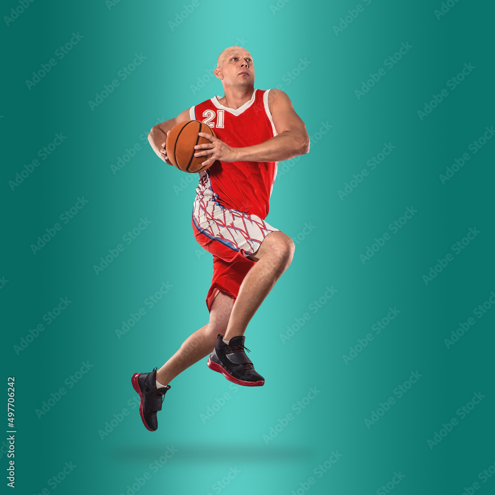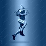 Basketball players on Sports background, collage of different professional athletes on gradient multicolored neon background.