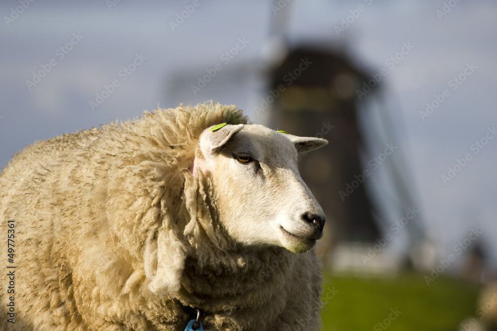 A sheep and an old windmill, Holland