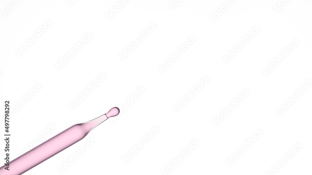 Macro shot of rosehip oil is dripping from chemical dropper on white background | Abstract body care cosmetics with rosehip oil formulation concept