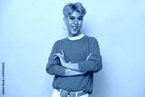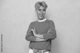 Youth asian transgender LGBT looking at camera while posing isolated over nude color background.