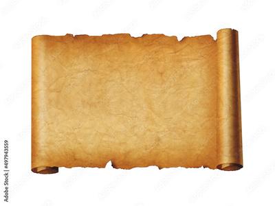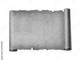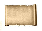 Old mediaeval paper sheet. Horizontal parchment scroll isolated on white