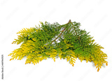 Blätter der Lawsons Scheinzypresse vor weißem Hintergrund