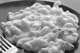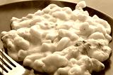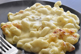 Macaroni and cheese on a black plate.