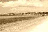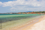 Gorgeous landscape view on sand beach Mediterranean sea. Tourism concept. Greece.