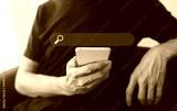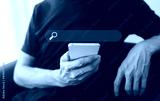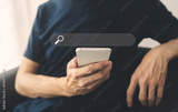 Man using smartphone searching information online via internet or application. Mobile phone search engine optimization or SEO for business or education knowledge. Technology and data concept.