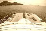 Behind the yacht, relax on the sea on a bright day. For relaxation with nature in luxury