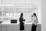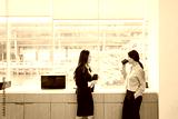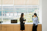 Two businesswomen enjoying coffee time in office