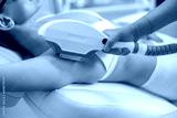 Closeup of armpit hair laser removal procedure with ipl machine in a beauty salon. Cosmetology