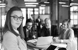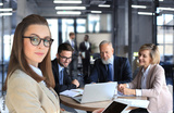 Business team working on laptop to check the results of their work.