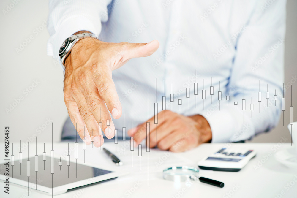 Business man offer and give hand for handshake in office.