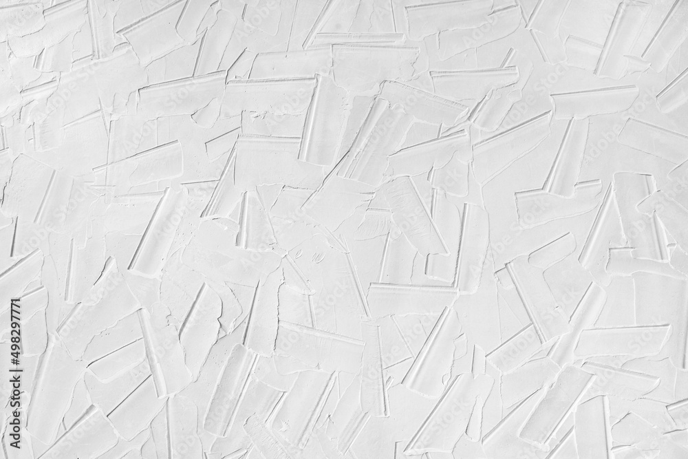 A pattern on the plaster made with a wide spatula. White wall, background image, texture