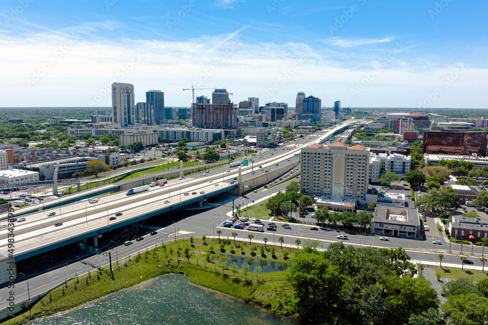 Aerial photograph of downtown Orlando, Florida. April 8 2022