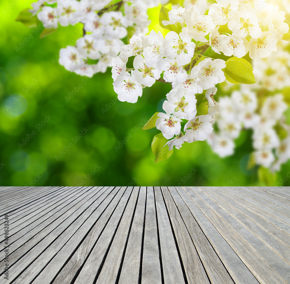 wooden table spring blossom