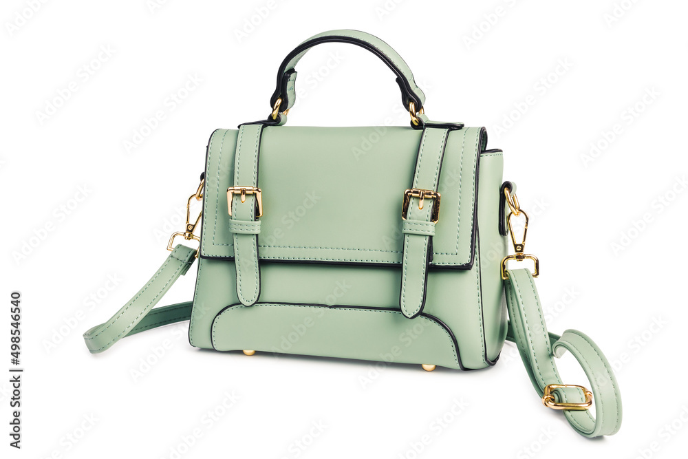 Fashion woman's green leather bag with clipping path isolated on white background.