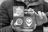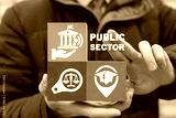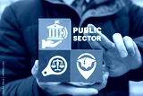 Concept of Public Sector. Government Education Healthcare Municipal Online Offline Service Provide People Infrastructure.