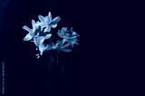 Bouquet of daffodils on a dark blue background. Close-up. Shallow depth of field..