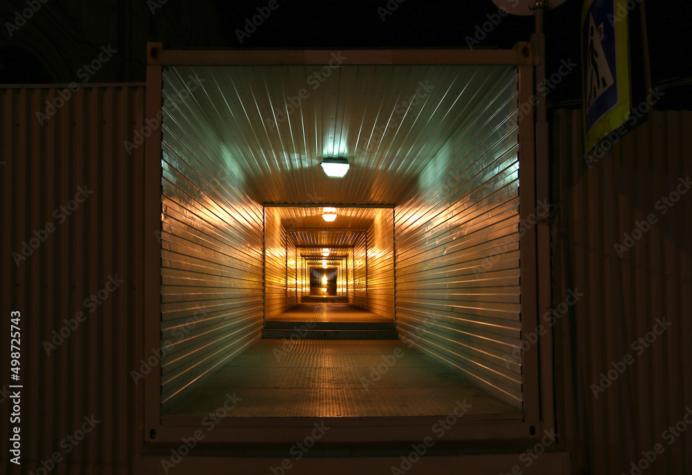 Long metal tunnel or passage