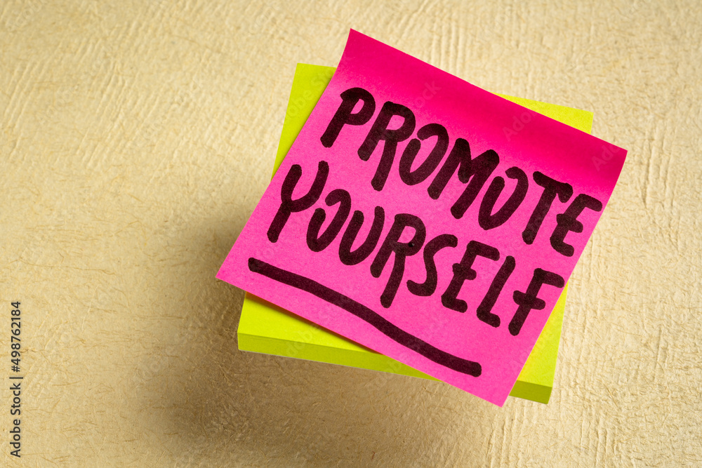 promote yourself reminder note - personal development and career concept