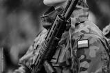 Polski żołnierz trzymający broń