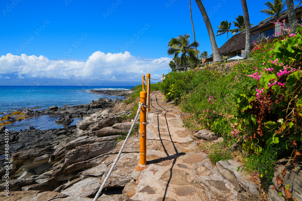 Coastline trail of Napili Bay in Kapalua in the West of Maui island, Hawaii, United States