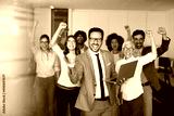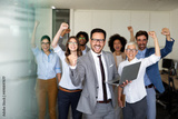 Happy group of business team celebrating a good job in the office. Business and finance concept.