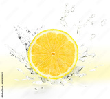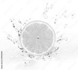 Fresh Lemon fruit falling in the air with splash water isolated on white background, Lemon citrus fruit on white background With clipping path.