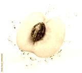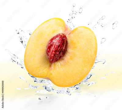Fresh Yellow falling in the air with splash water isolated on white background, Peach fruit on white background With clipping path.