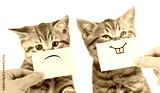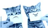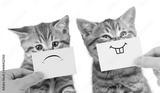 funny cats with opposite emotions one happy and another unhappy or sad isolated