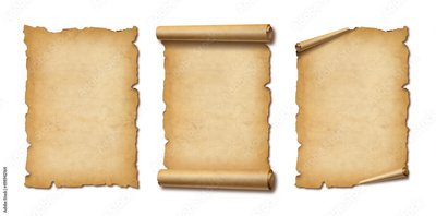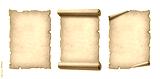 Old Parchment paper scroll set isolated on white with shadow. Vertical banners