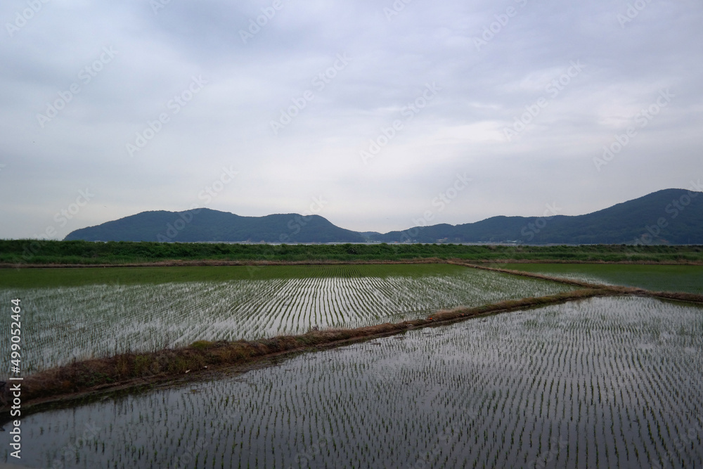 a landscape of paddy farming