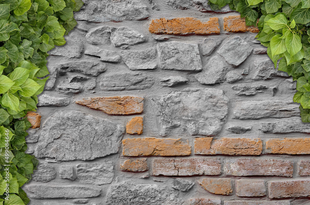 Old Texture brick wall, background, detailed pattern covered in ivy