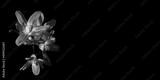 Snow White (Chionodoxa Boiss.) Blue, tiny flower on a black background. Glory to the snow