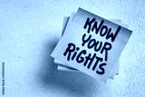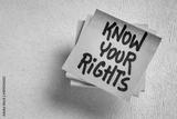 Know your rights reminder, handwriting on a sticky note, legal concept