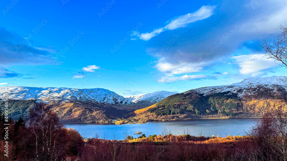 Lake and loch Lomond mountains sunset sunny day with clouds in 2020