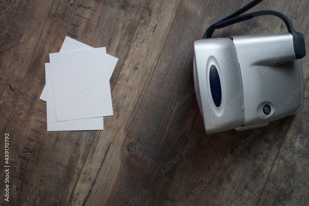 Popular photo of the 90s. An old camera and a place to insert any photo
