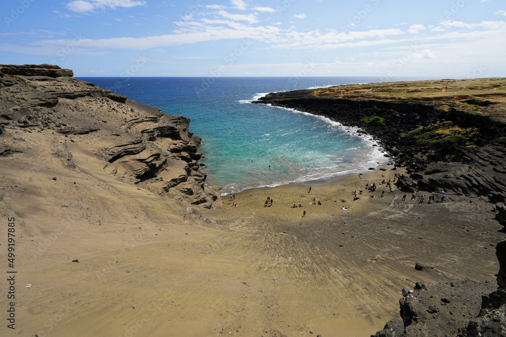 Landslide of volcanic olivine crystals above Papakolea Beach aka Green Sand Beach near South Point on Big Island, Hawaii, United states