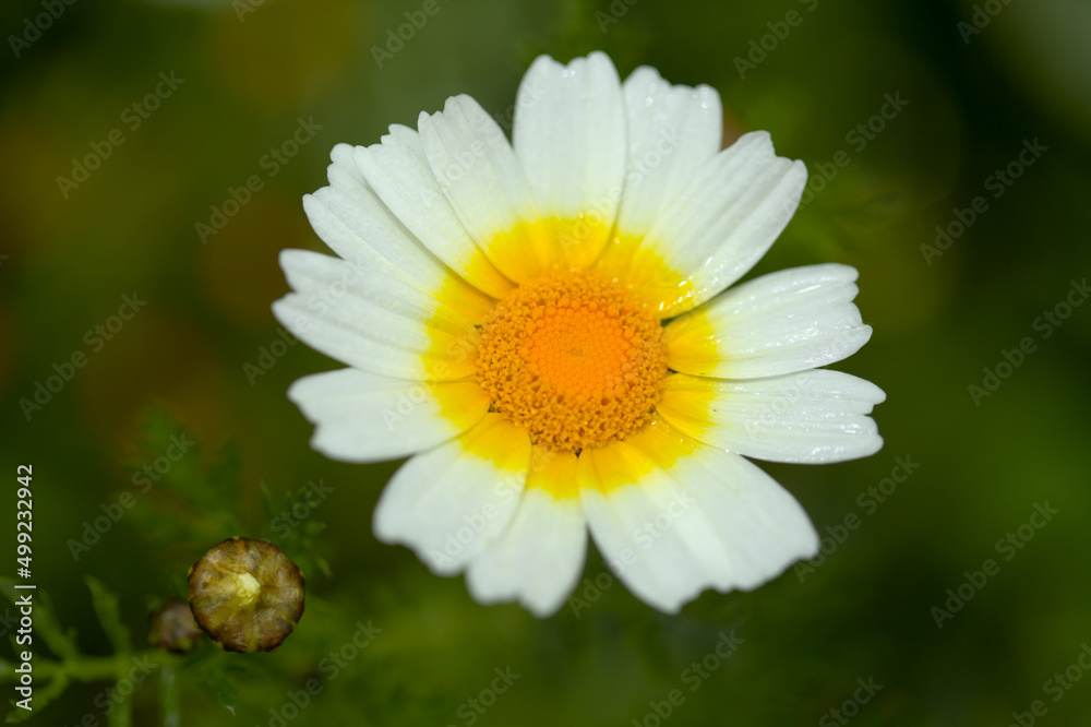 Flora of Gran Canaria - Glebionis coronaria, formerly called Chrysanthemum coronarium, garland chrysanthemum natural macro floral background