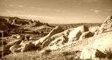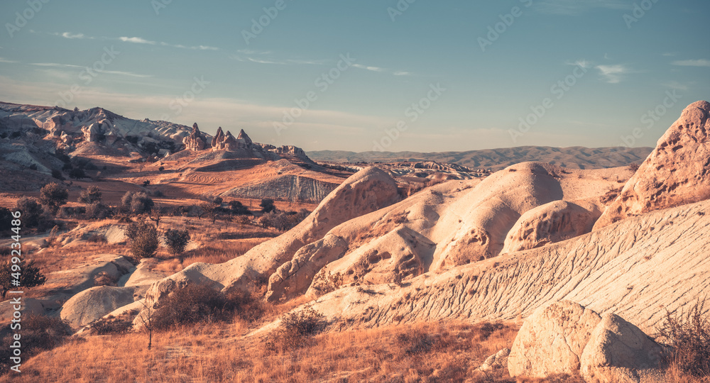 Panoramic view of canyon in Cappadocia under sunlights, Turkey