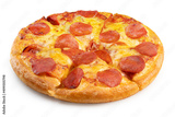 Spicy Pepperoni Pizza isolated on white background, Pepperoni Pizza on white background With clipping path.