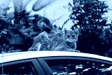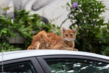 A stray cat isitting on the roof of the car. Istanbul, Turkey.
