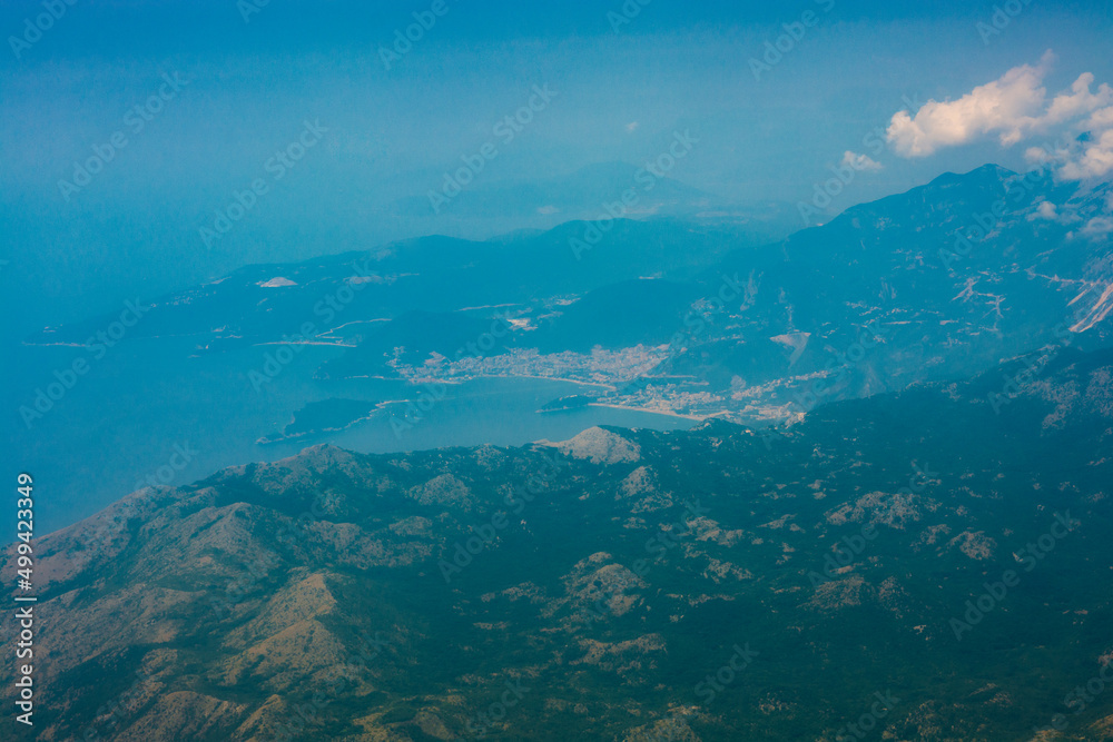 Mountains and the Adriatic Sea. View of the coast from above