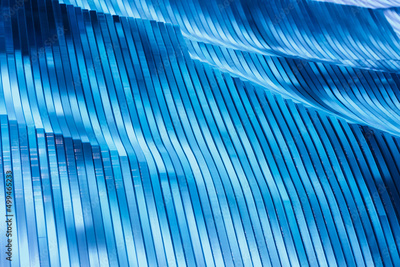 Surface, geometric pattern of the ends of thick glass. Blue glass background, diagonal lines and strips.