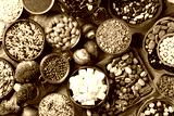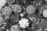 Variety of vegan, plant based protein food, legumes, lentils, beans