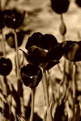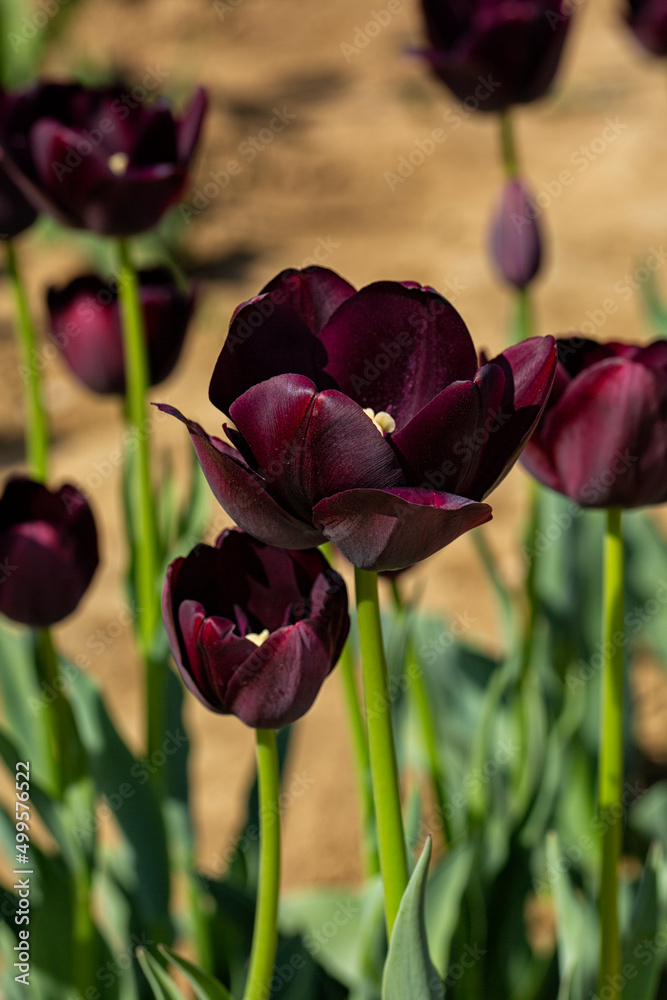 Black flowers, Gothic Tulips. Dark purple plants. Close up. Vertical image.