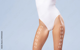 Female body with the drawing arrows on it. Fat lose, liposuction and cellulite removal.