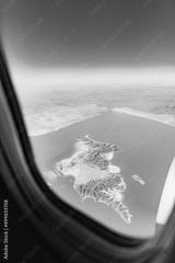 Aerial View Of Lake Urmia From Window Of Plane. Beautiful Lake Urmia Is An Endorheic Salt Lake In Iran. Aerial View Of Jezireye Island-Eshek. West Azerbaijan Province, Iran, Kurdistan.
