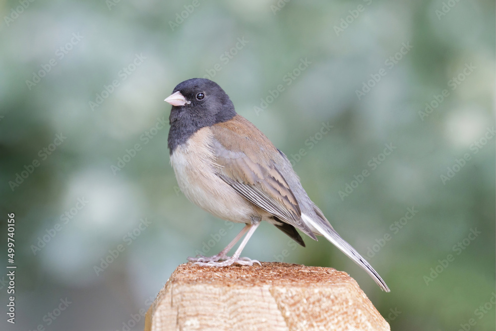 Dark-eyed Junco Adult Male Perching on Fence Pole. Santa Clara County, California, USA.