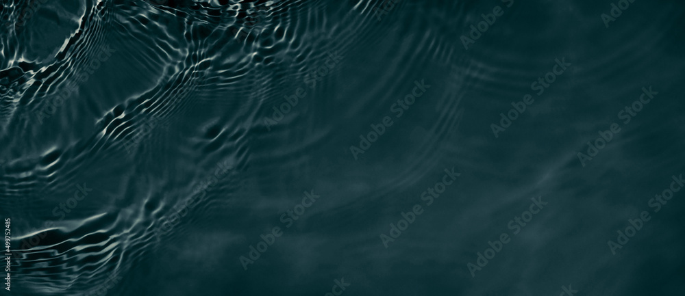 Black transparent clear calm water surface texture with ripples, splashes. Abstract nature banner background. Dark grey water waves. Copy space, top view. Cosmetic moisturizer micellar toner emulsion