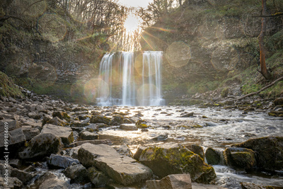 Breacon Beacons Four Falls Waterfall with sunrise light